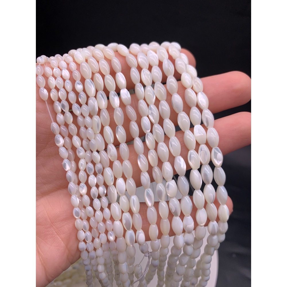 • Каменные бусины, Перламутр белый, рис, 5х8 мм, длина нити 38 см