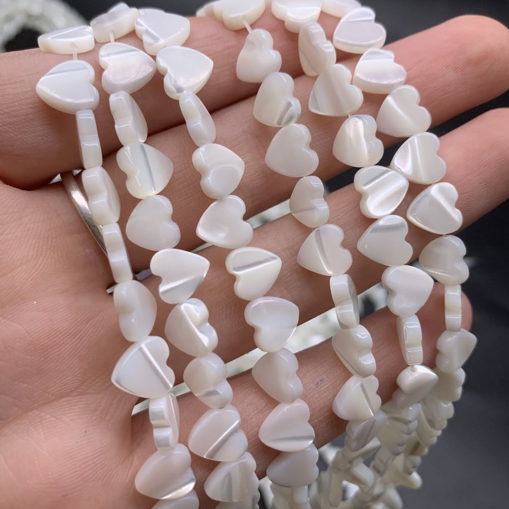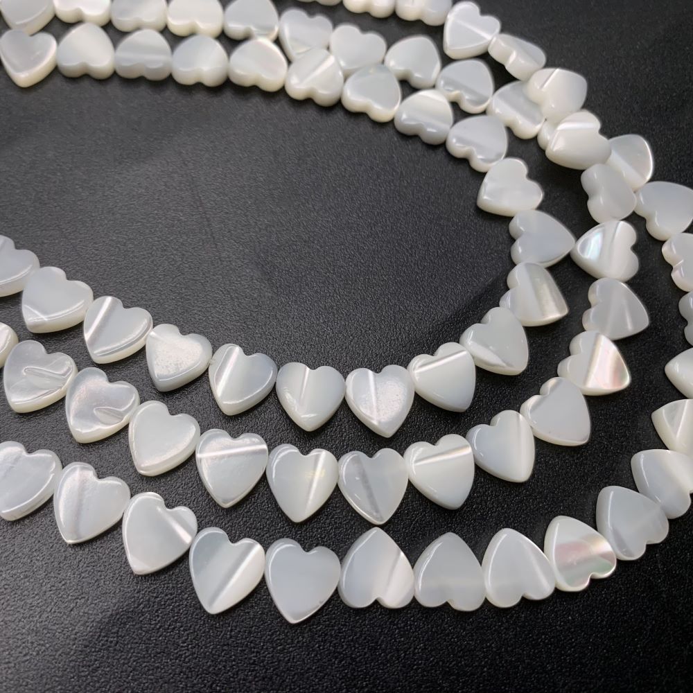 Каменные бусины, Перламутр, белый, сердечки, 8х3 мм, длина нити 38 см 16405