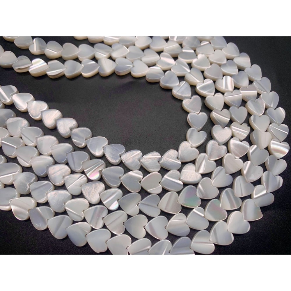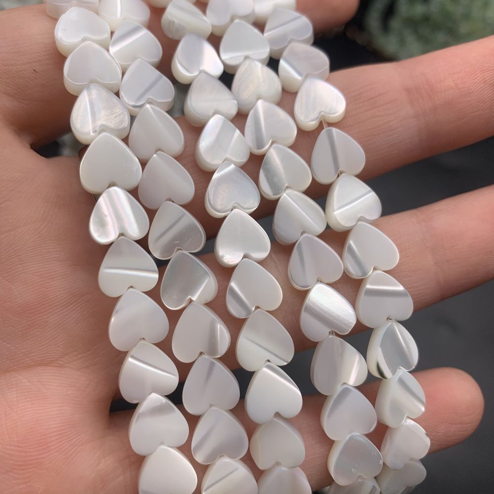 Каменные бусины, Перламутр, белый, сердечки, 8х3 мм, длина нити 38 см