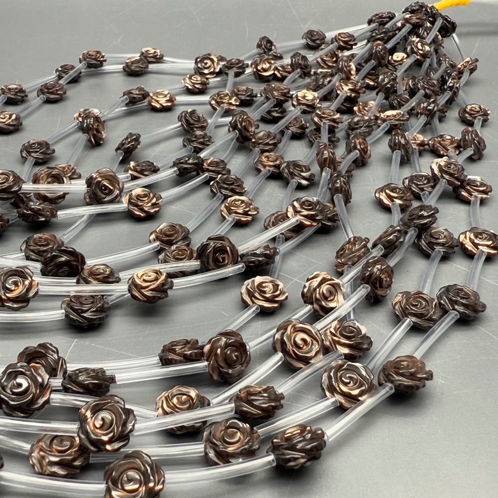 • Каменные бусины, Перламутр, шоколадный, розочки, двусторонние, размер 10 мм, 15 бусин на нити, цена за нить