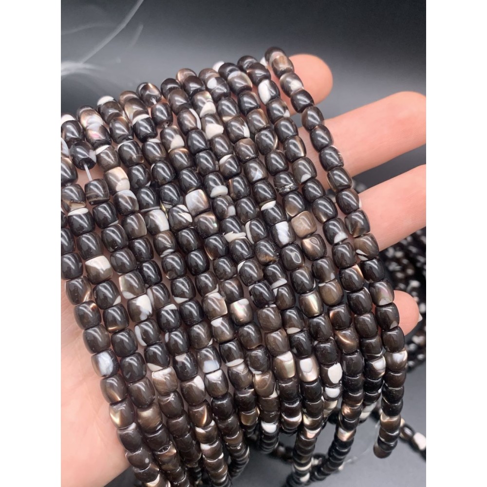 Каменные бусины, Перламутр шоколадный, тонированный, бочонок, 6х6 мм, длина нити 38 см