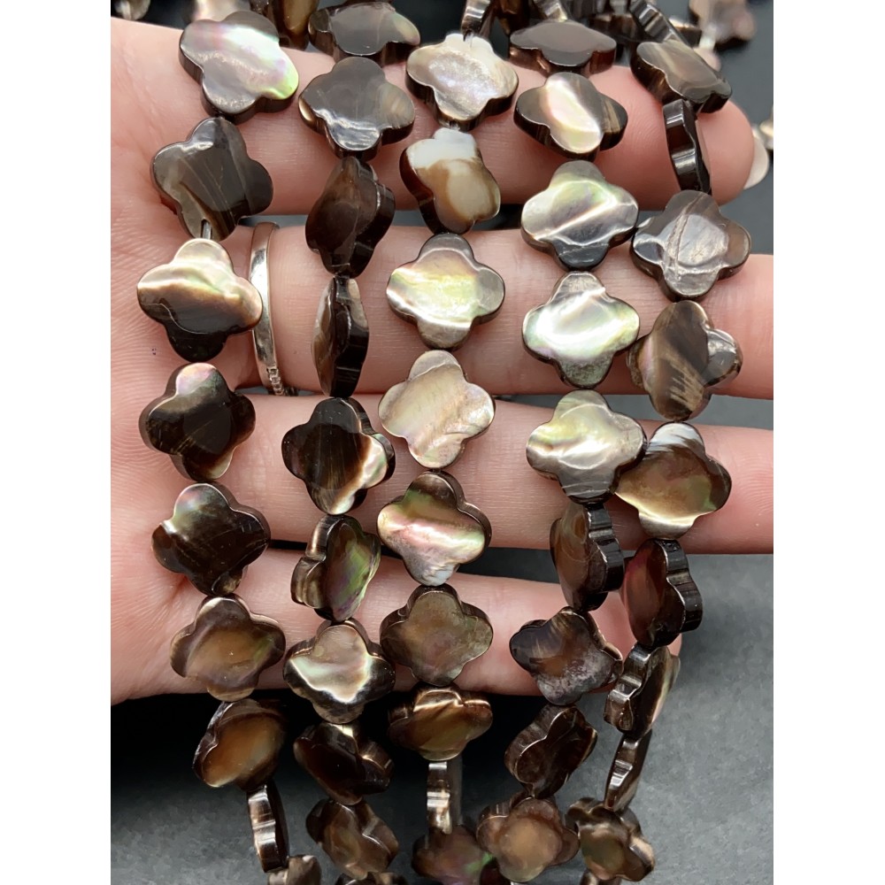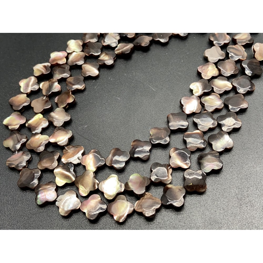 Каменные бусины, Перламутр шоколадный, тонированный, клевер, 12х3 мм, длина нити 38 см 0 713 ₽