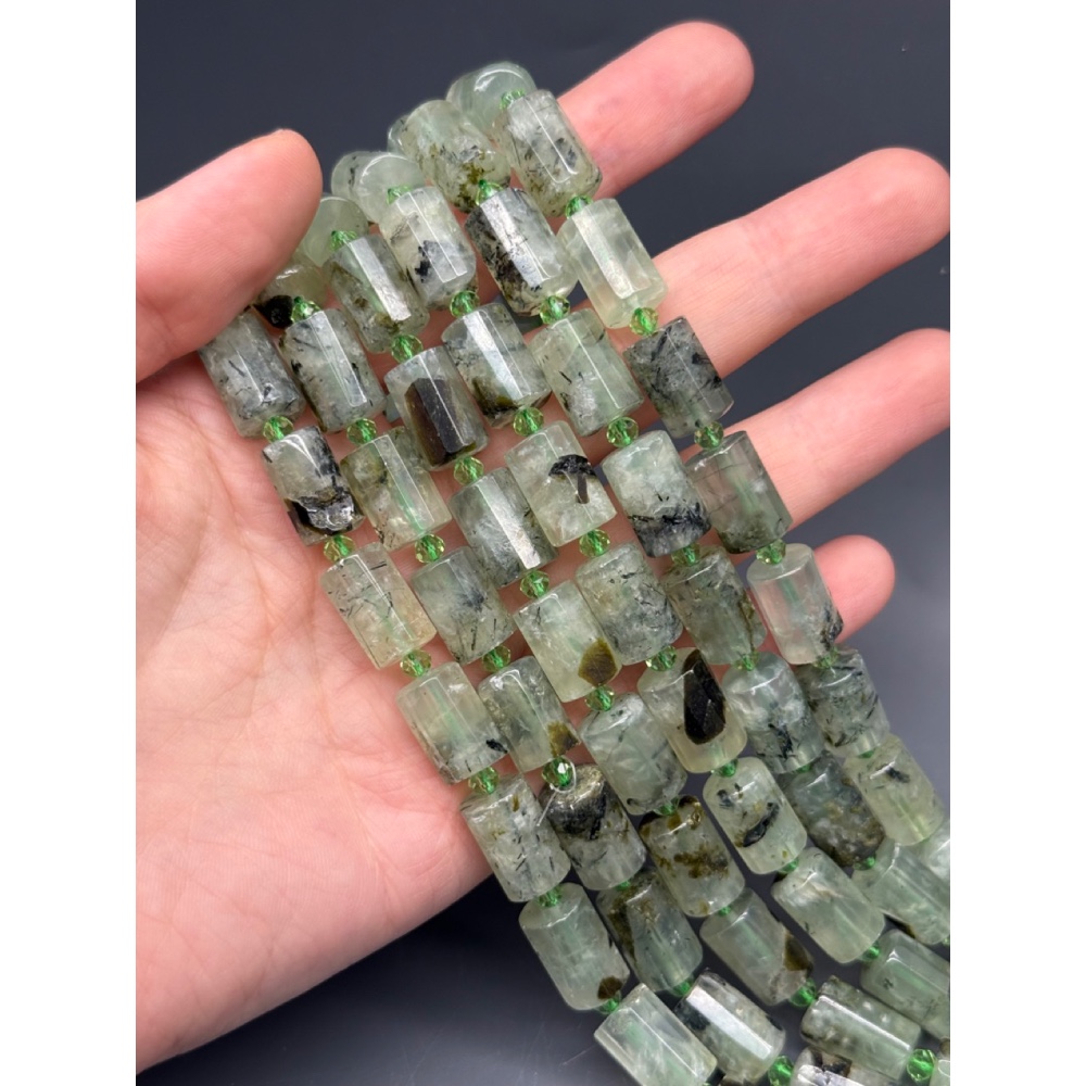 Теги: Каменные бусины, Пренит, с включениями, столбики (трубочки), с гранями, размер~15х10 мм, длина нити 38 см, 20830, Фриформы Свободные формы