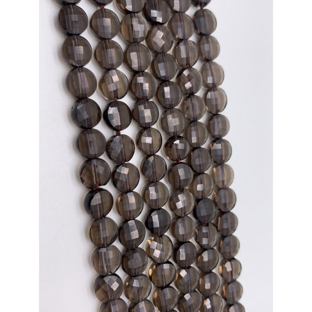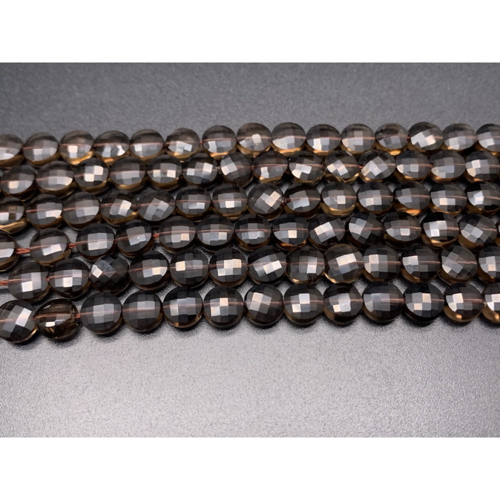 Каменные бусины, Раухтопаз, огранка, монетка, 6,5 мм, длина нити 38 см