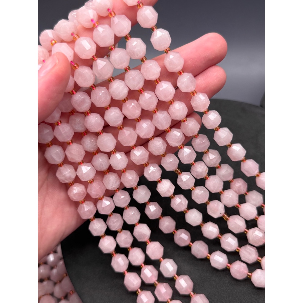 • Каменные бусины, Розовый кварц, ювелирная огранка, 10х9 мм, длина нити 38 см