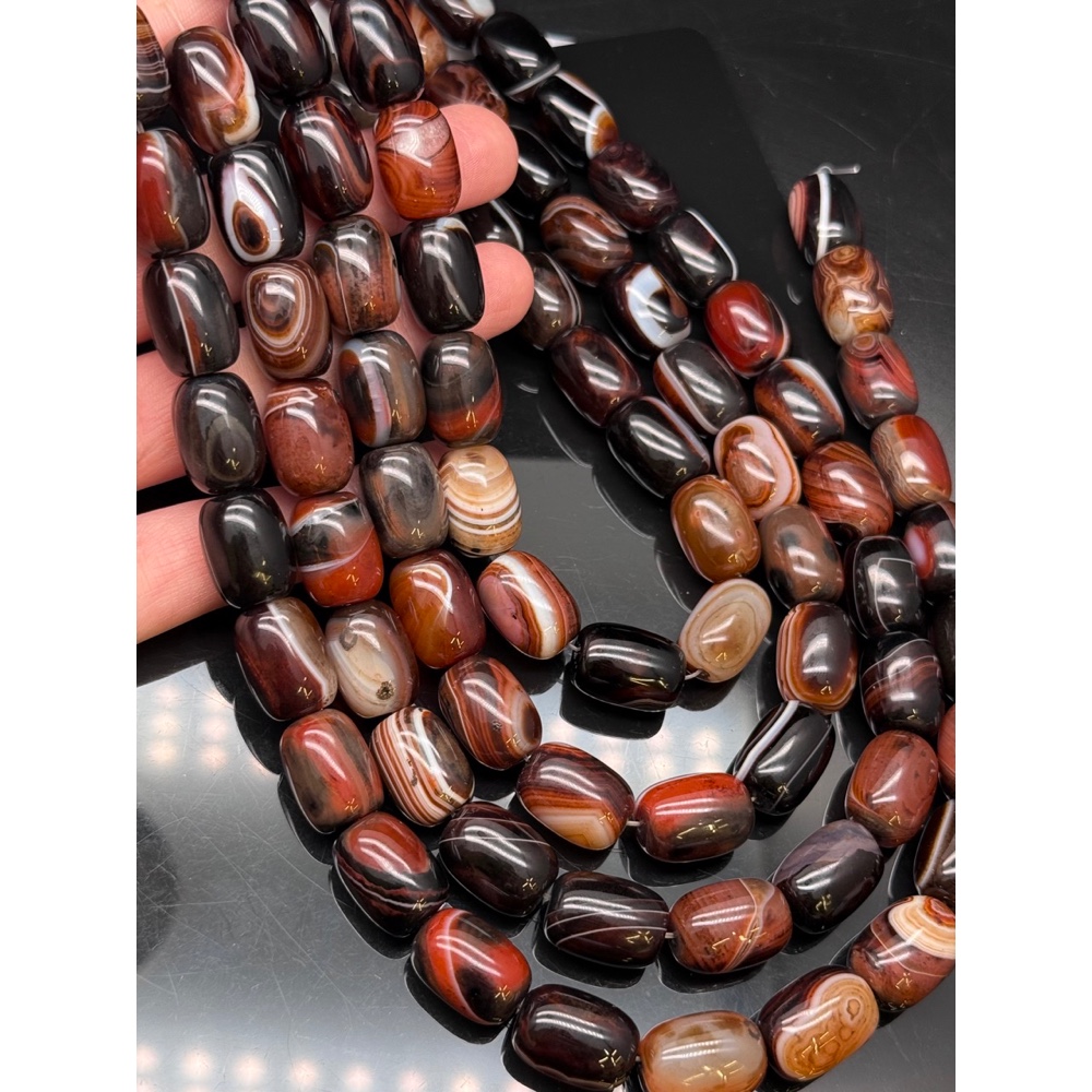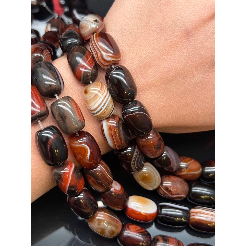Каменные бусины, Сардоникс, бочонок, 18х12 мм, длина нити 38-39 см