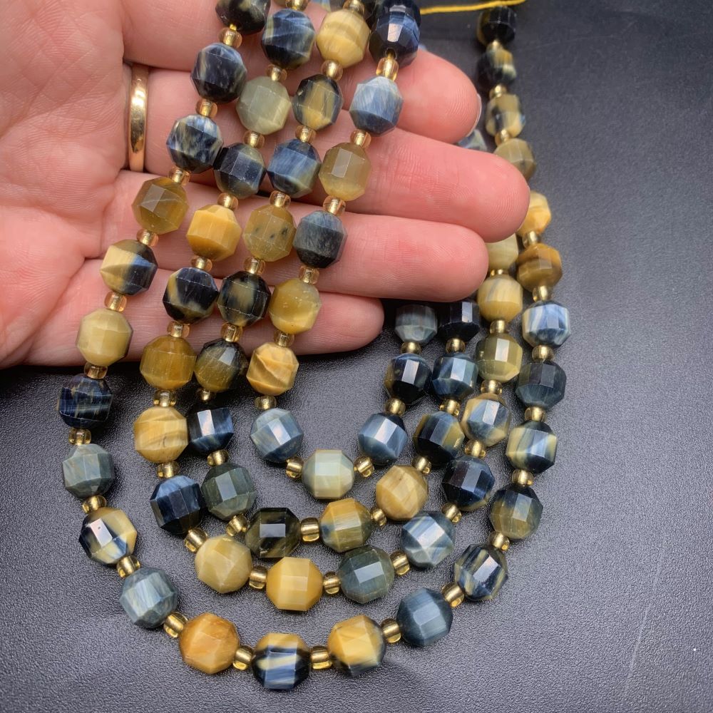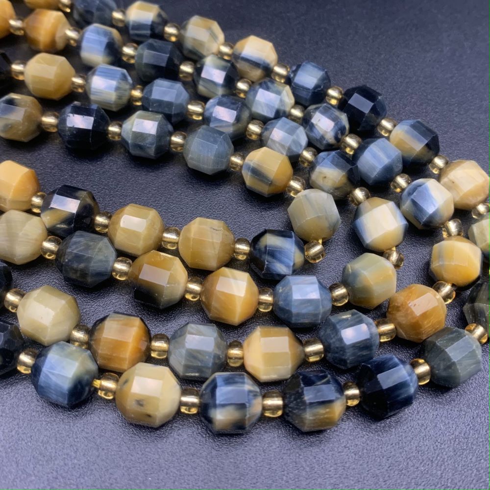 Каменные бусины, Тигрово-соколиный глаз, ювелирная огранка, 10х9 мм, длина нити 38 см