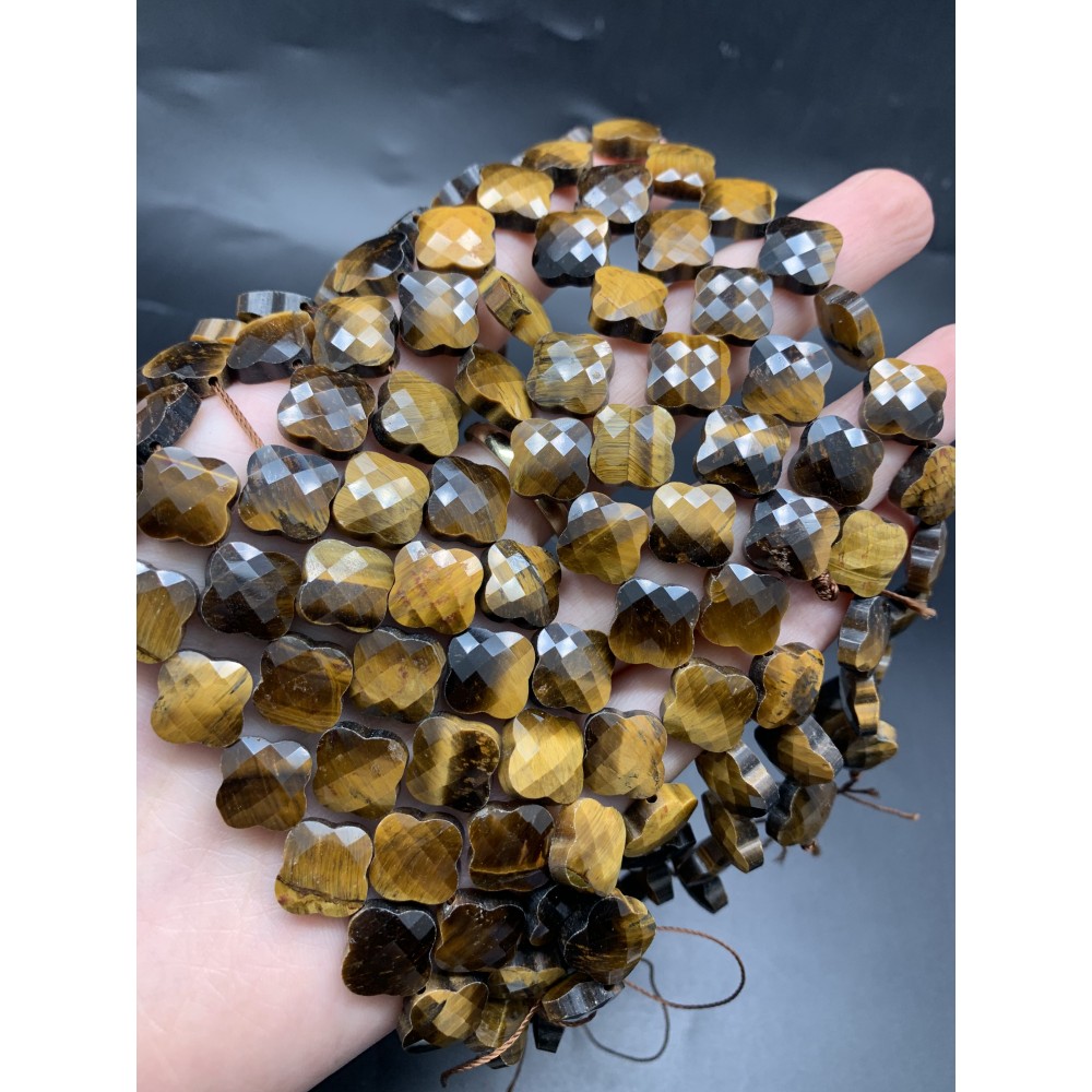 Каменные бусины, Тигровый глаз, клевер, в огранке, 13х6 мм, длина нити 19 см, 15 бусин