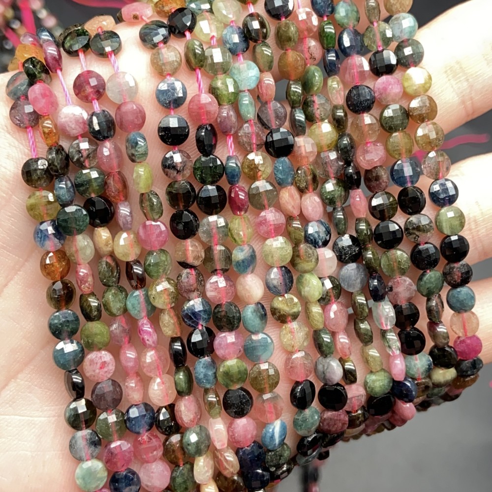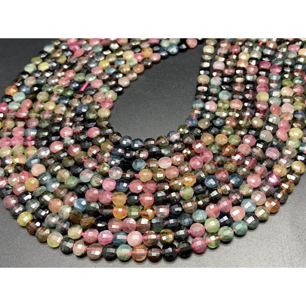 Каменные бусины, Турмалин, монетка, огранка, 4,5х2,5 мм, длина нити 38 см
