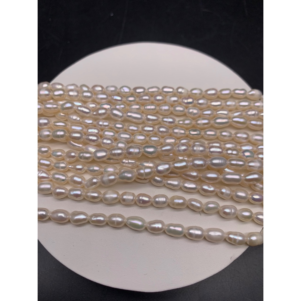Каменные бусины, Жемчуг, белый, рис, 3-4 мм, длина нити 35 см