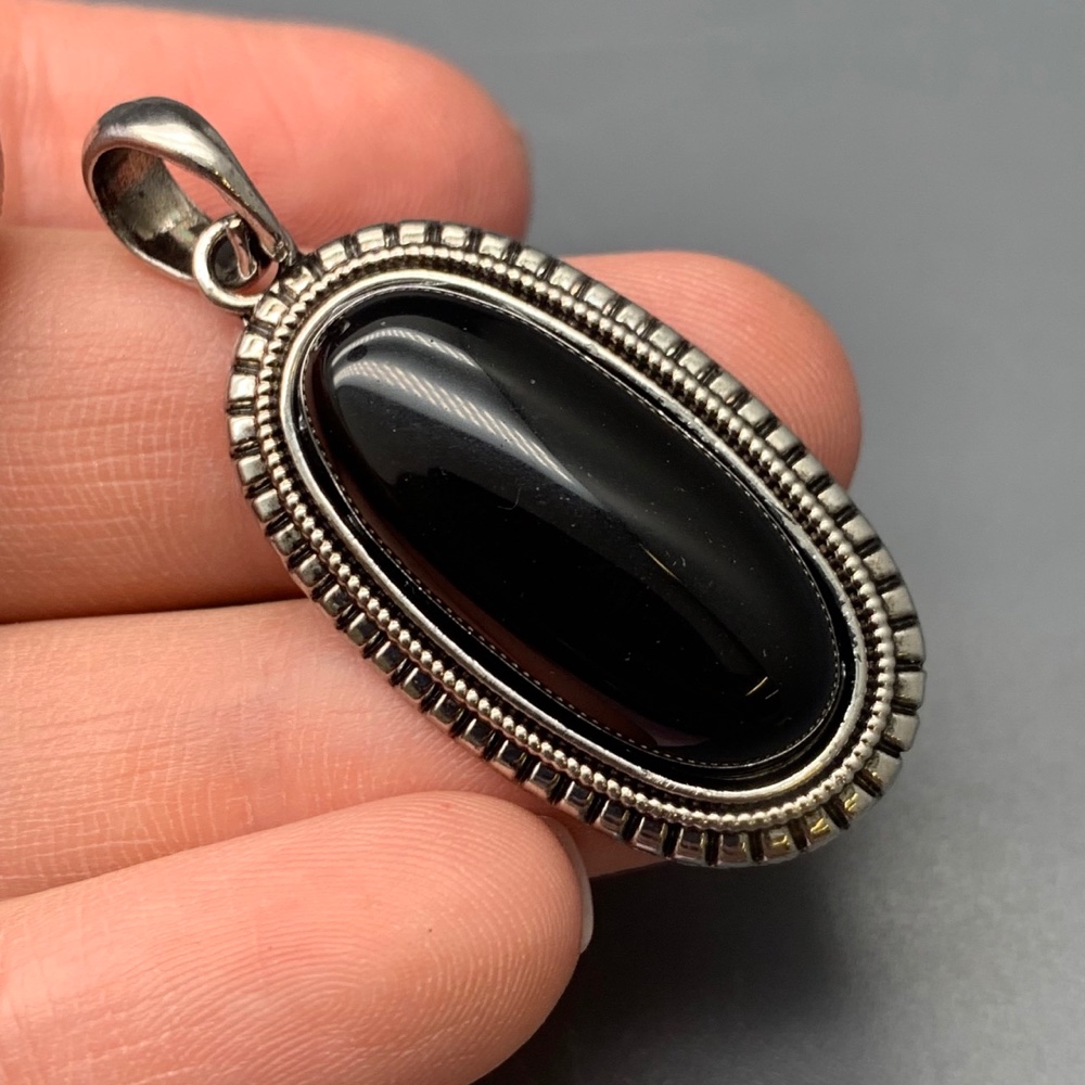 Теги: Подвеска, Агат черный, оникс, овальная, в оправе, размер 38х20х7 мм, цена за 1 шт., 19934, Кулоны