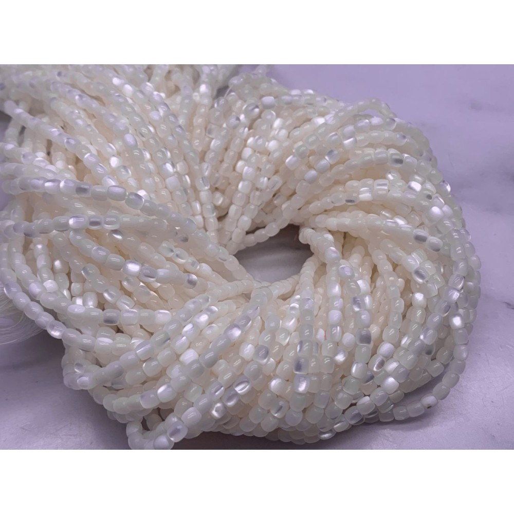 Каменные бусины, Перламутр белый, бочонок, 3х3 мм, длина нити 38 см