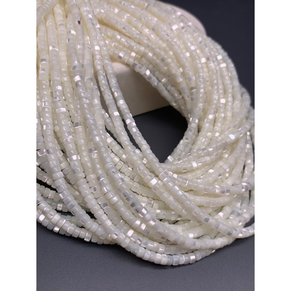 Теги: Каменные бусины, Перламутр белый, люкс, шайба, 4х2 мм, длина нити 38 см, 12825, Трубочки, Шайбы, Бублики