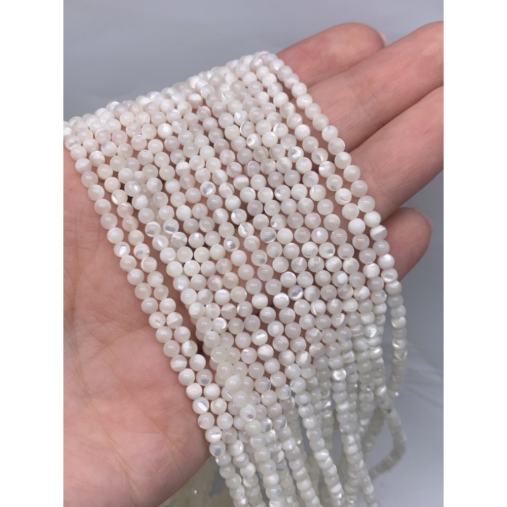 Теги: Каменные бусины, Перламутр белый, шарик гладкий, 3-3, 5 мм, длина нити 39 см, 17157, Бусины гладкие