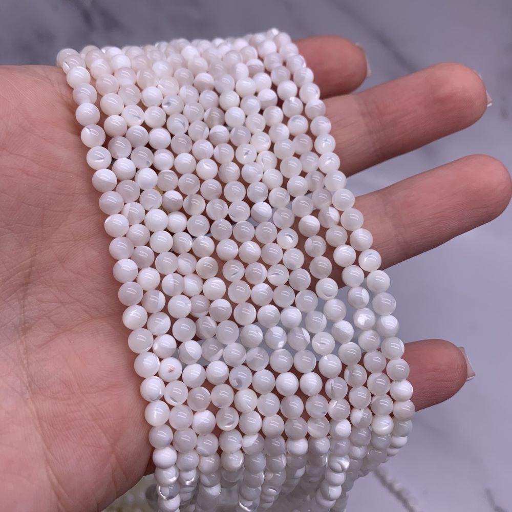 Каменные бусины, Перламутр белый, шарик гладкий, 4-4,5 мм, длина нити 39 см
