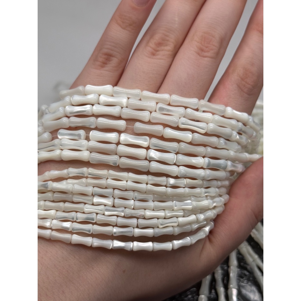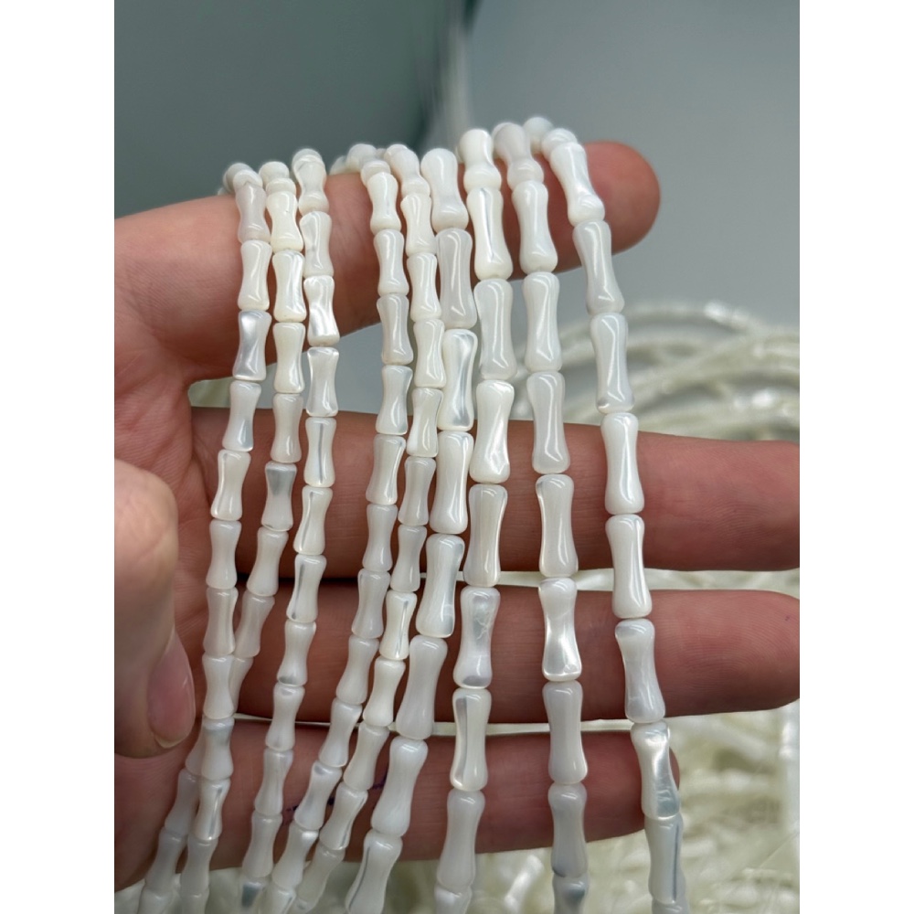 Каменные бусины, Перламутр белый, тонированный, столбики (трубочки), 12х5 мм, длина нити 40 см