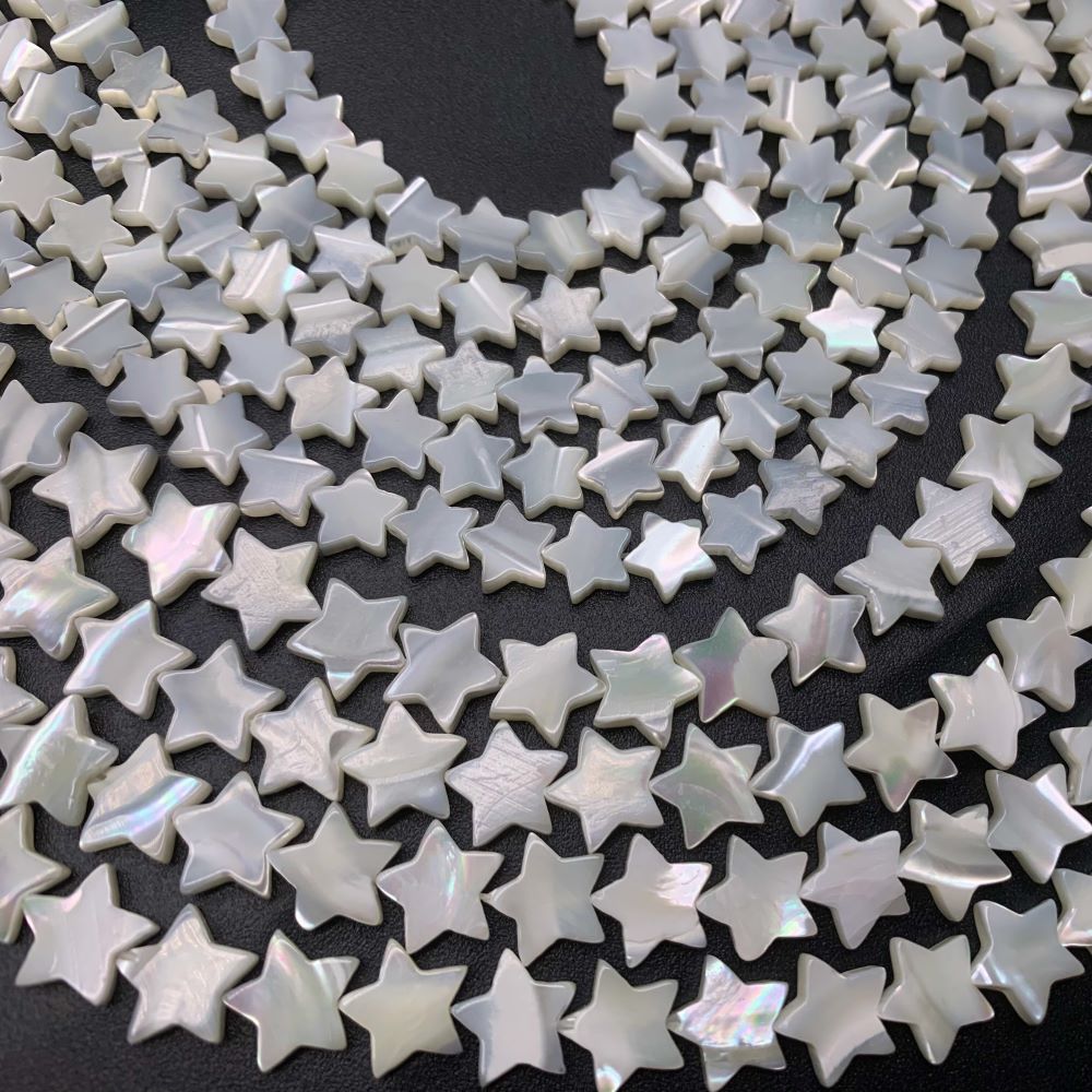 Теги: Каменные бусины, Перламутр, белый, звездочки, 6 мм, длина нити 38 см, 19881, Нестандартные формы