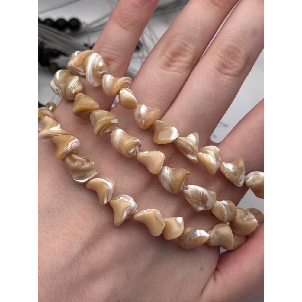 Каменные бусины, Перламутр, бежевый, фриформы, ракушка, размер ~12х10 мм, длина нити 39 см