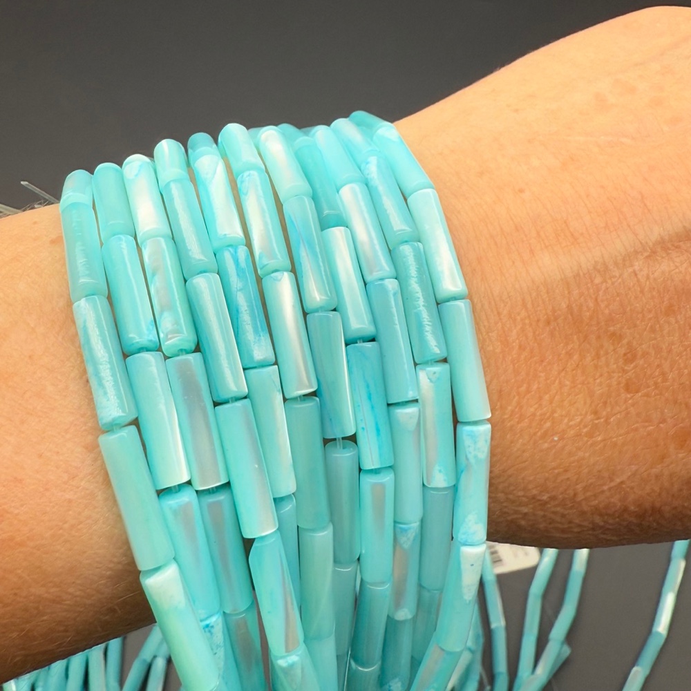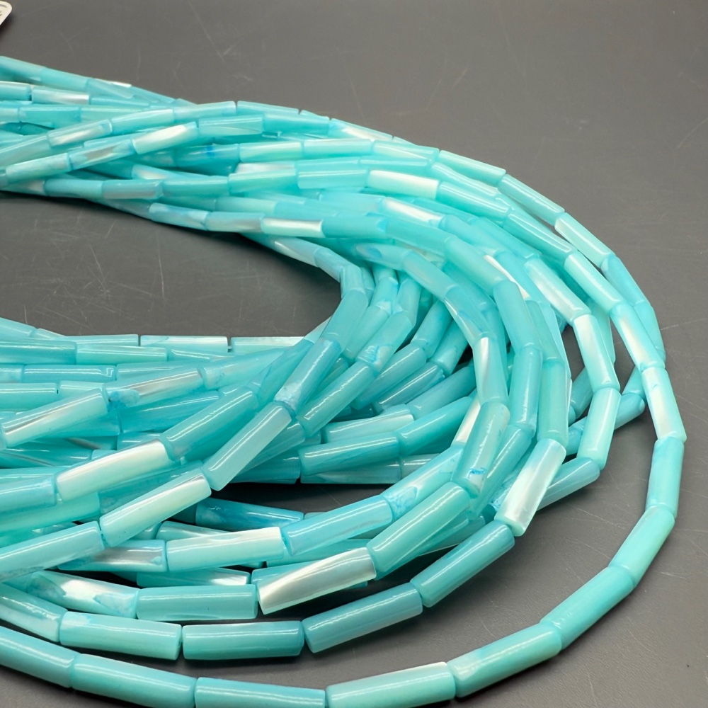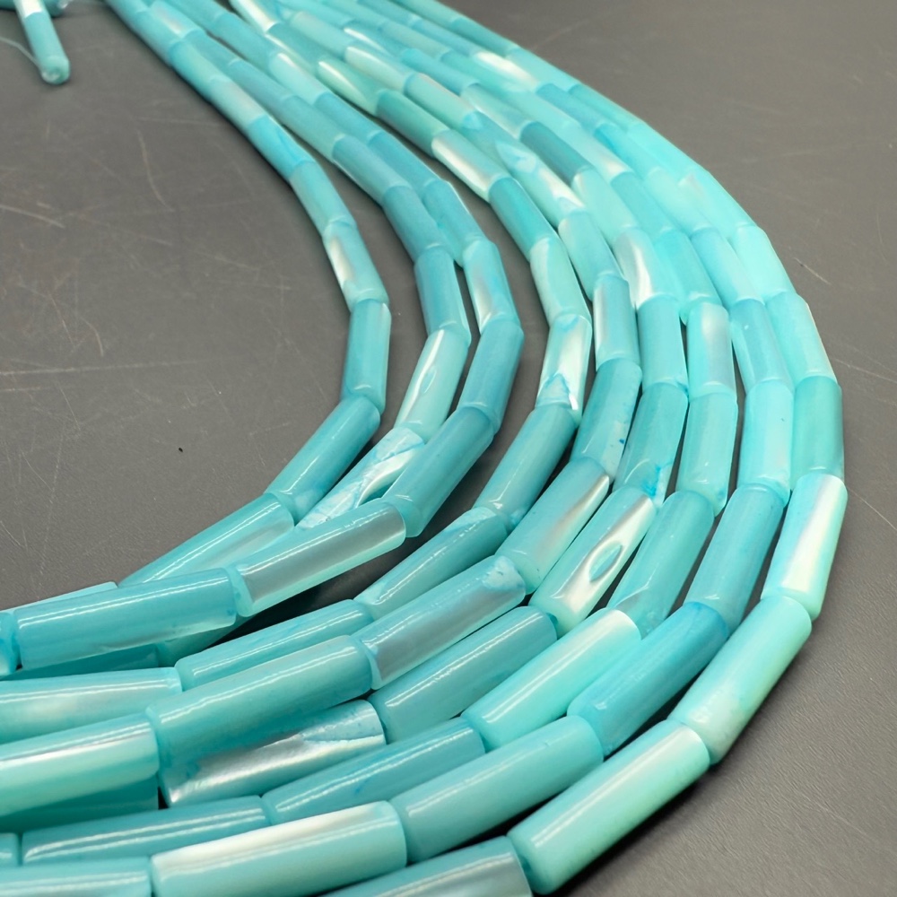 • Каменные бусины, Перламутр голубой, тонированный, столбики (трубочки), 13х4 мм, длина нити 38 см