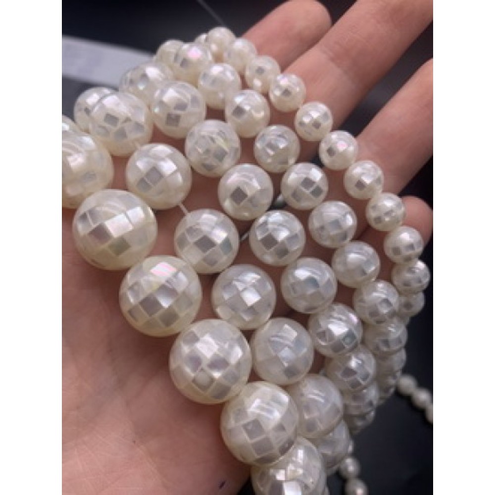 Каменные бусины, Перламутр люкс, белый, шарик гладкий, 6 мм, одна бусина