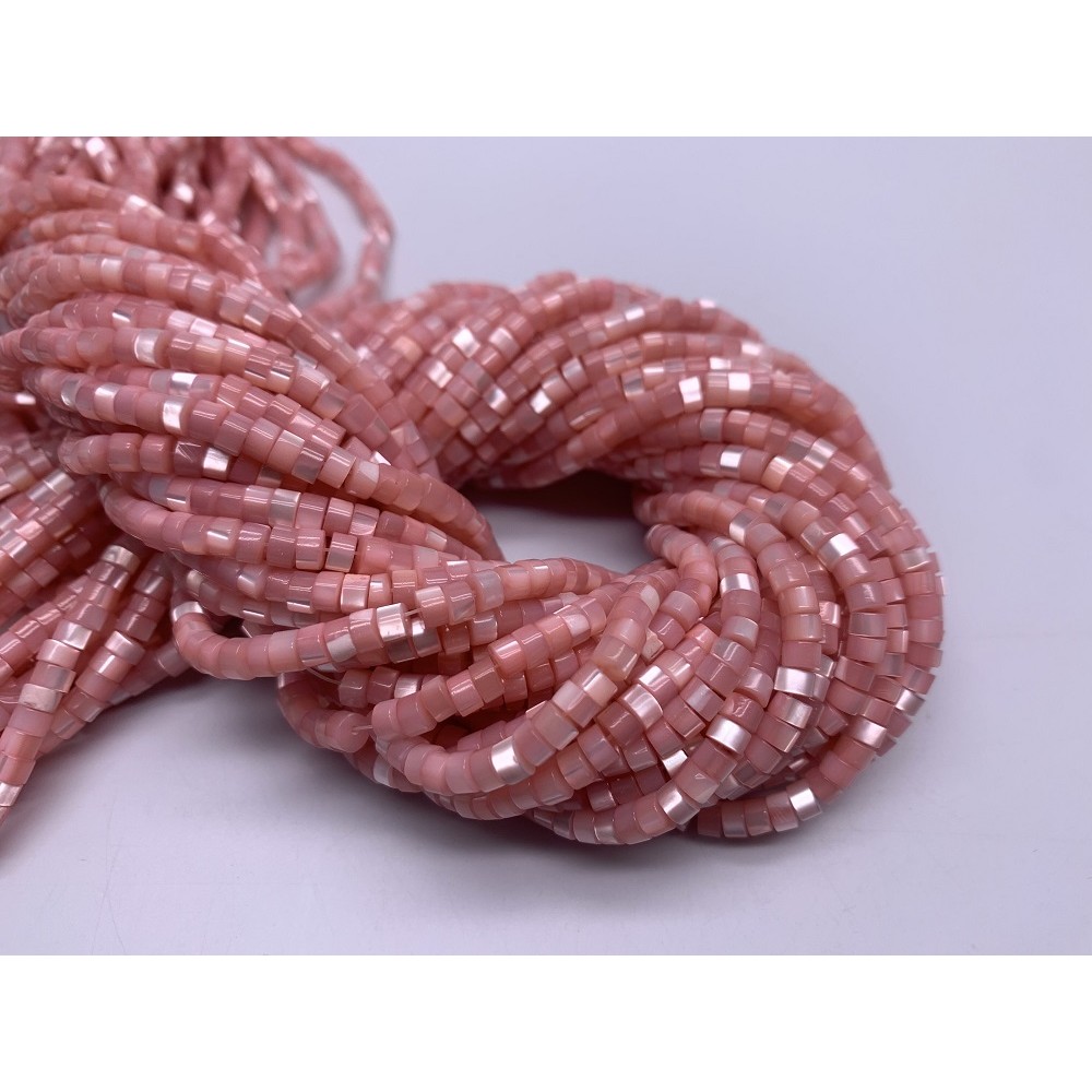 Каменные бусины, Перламутр розовый, тонированный, шайба, 4х2 мм, длина нити 38 см