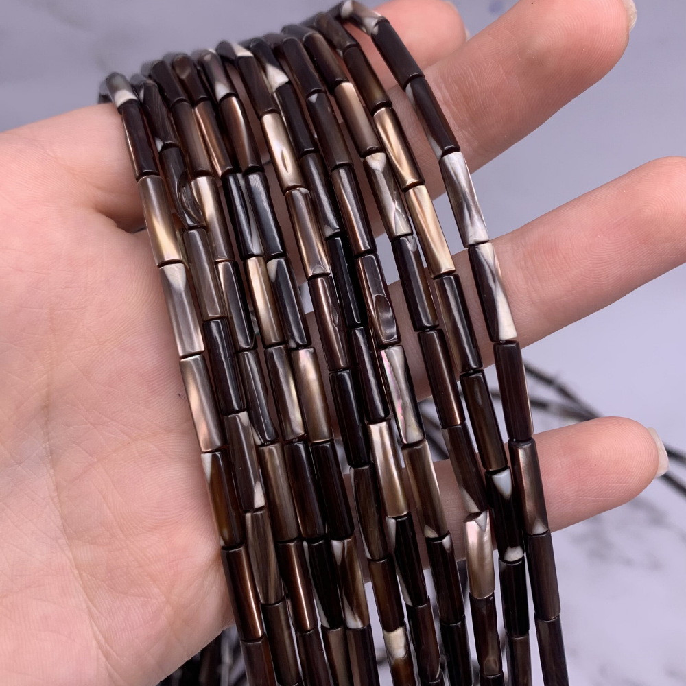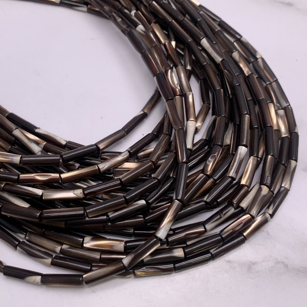 • Каменные бусины, Перламутр шоколадный, тонированный, столбики (трубочки), 13х4 мм, длина нити 38 см