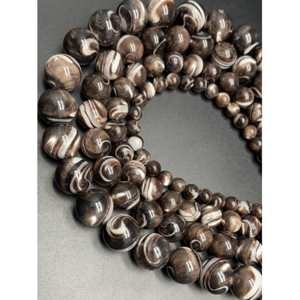 Каменные бусины, Перламутр шоколадный, тонированный, шарик гладкий, 15 мм, длина нити 38 см 0 1700 ₽
