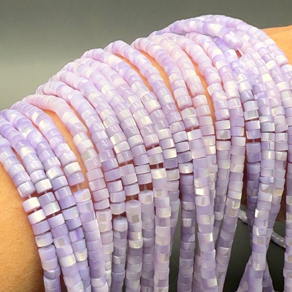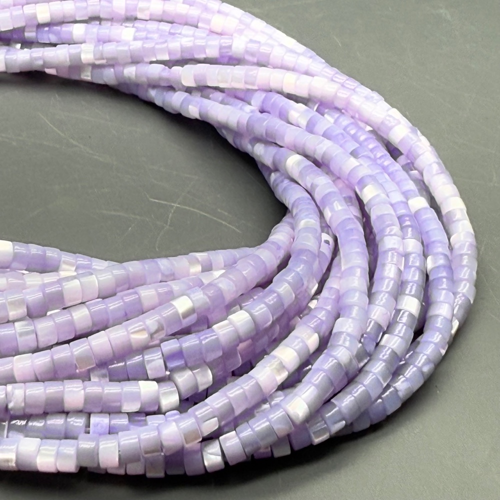 Теги: Каменные бусины, Перламутр сиреневый, тонированный, шайба, 4х2 мм, длина нити 38 см, 16934, Трубочки, Шайбы, Бублики