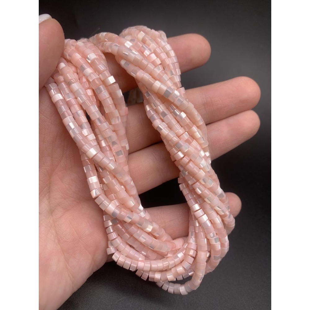 Каменные бусины, Перламутр светло розовый, тонированный, шайба, 4х2 мм, длина нити 38 см