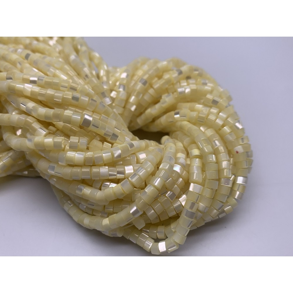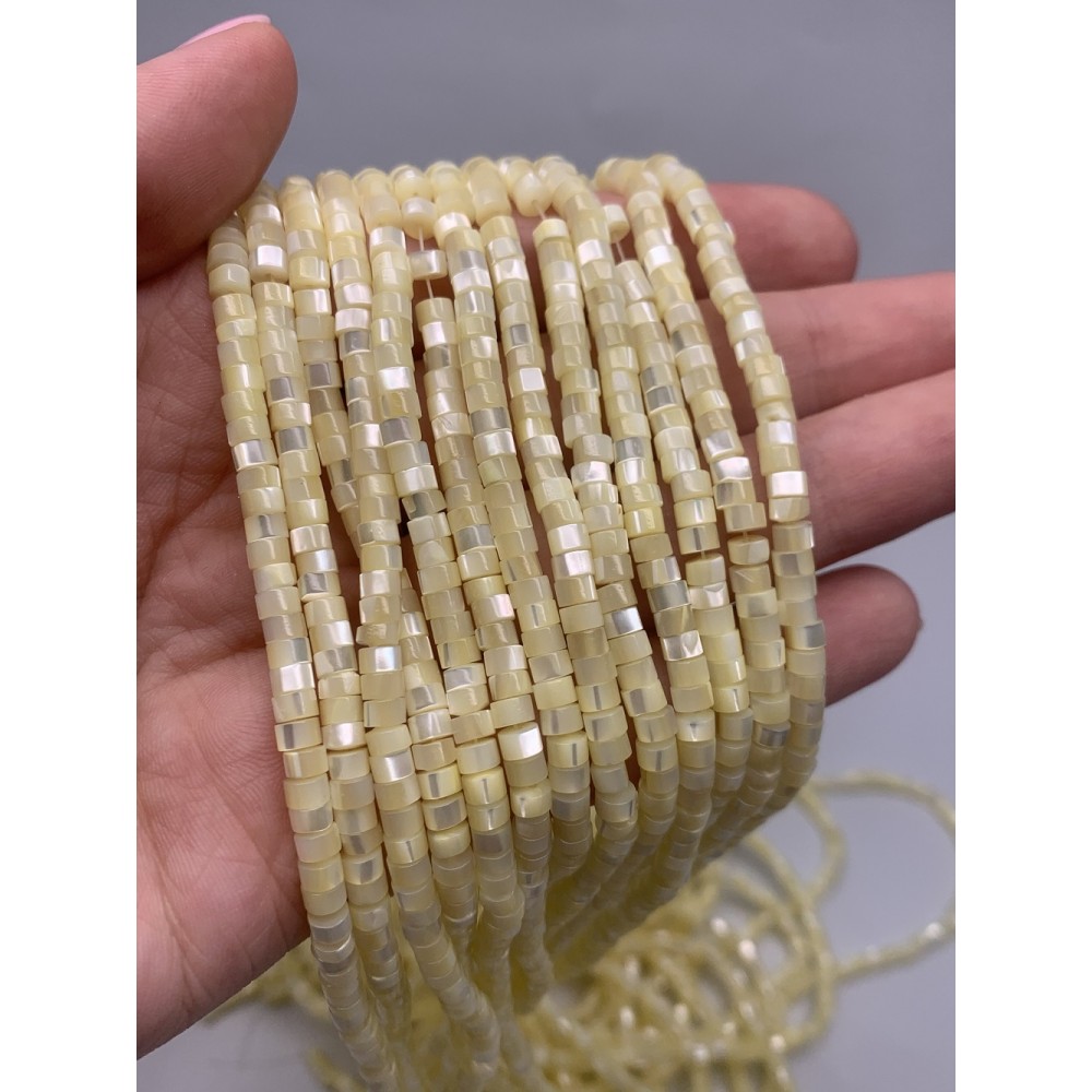 Каменные бусины, Перламутр светло-желтый, тонированный, шайба, 4х2 мм, длина нити 38 см