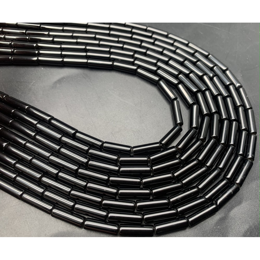 Каменные бусины, Агат, чёрный, трубочки, 13х4 мм, длина нити 38 см