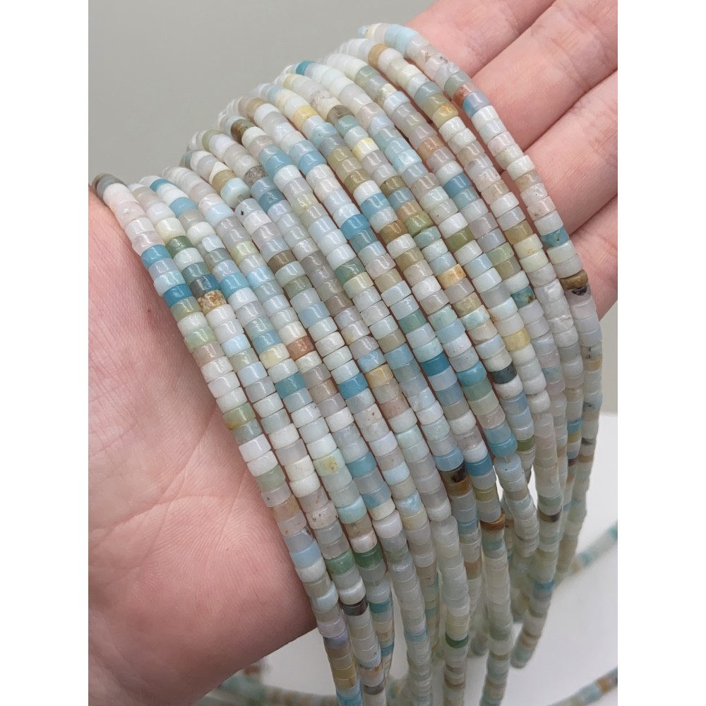 Каменные бусины, Амазонит, шайба, 4х2 мм, длина нити 38 см