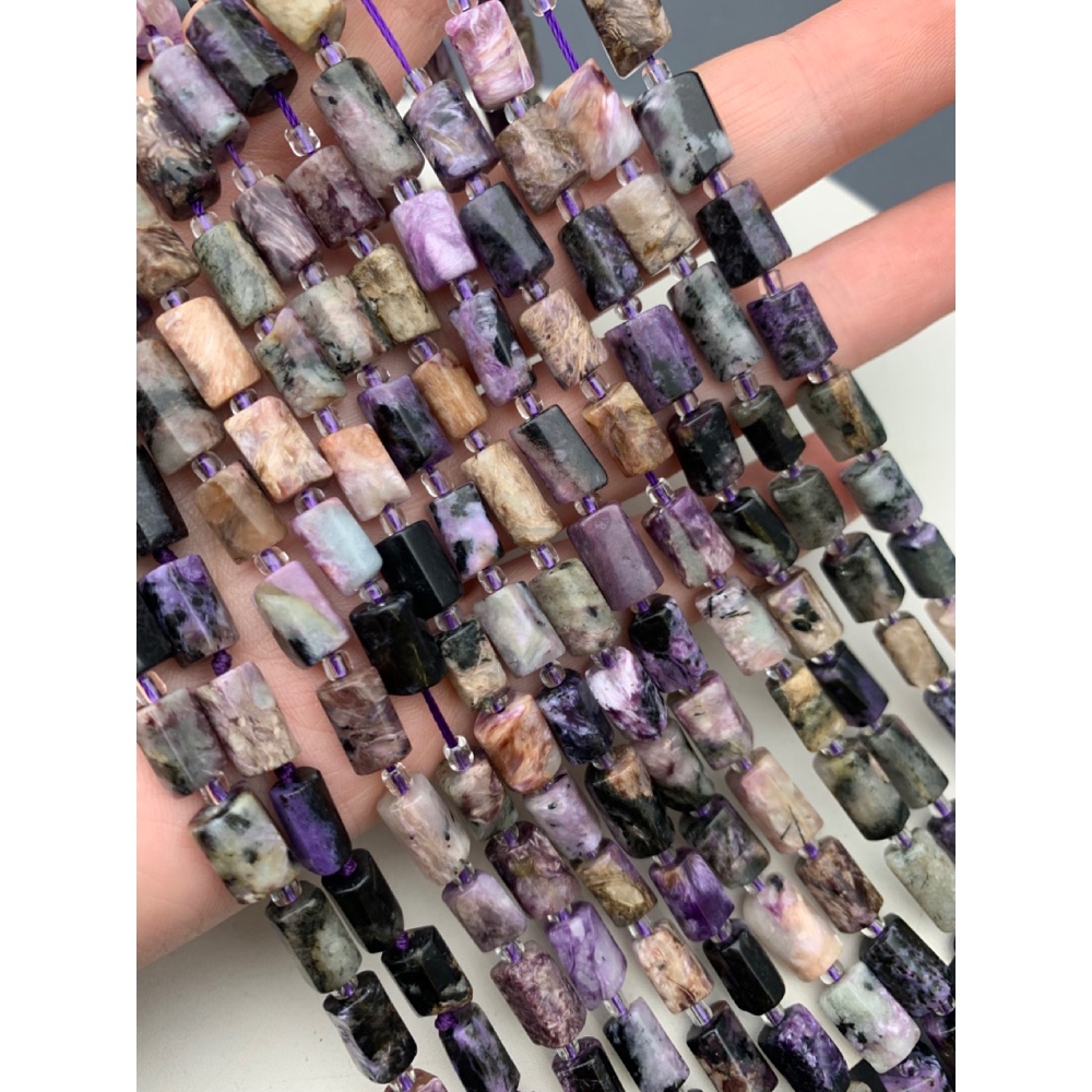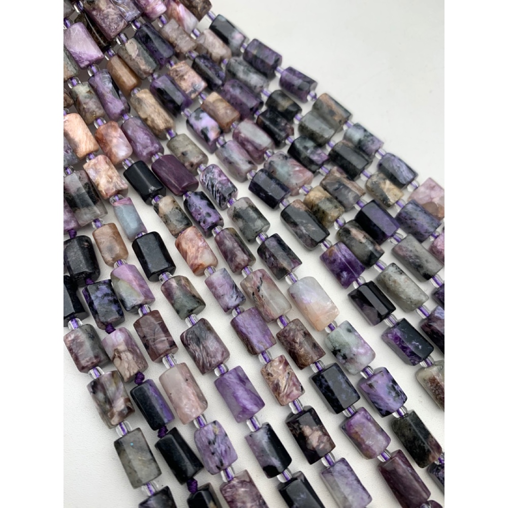 • Каменные бусины, Чароит, не обработанный, столбики, 10х7 мм, длина нити 38 см