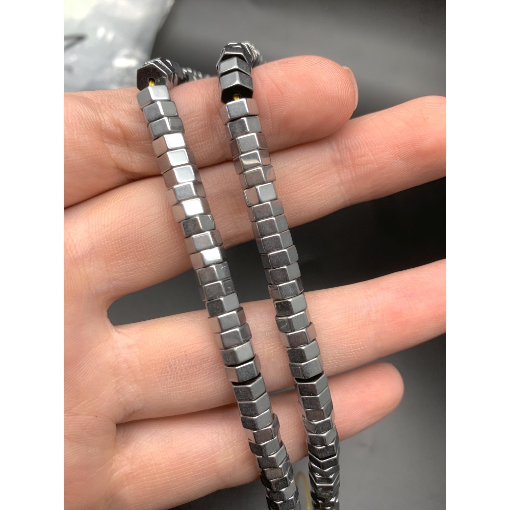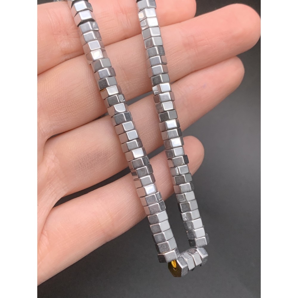 • Каменные бусины, Гематит синтетический, серебро, шайба, размер 6х3 мм, нить 38 см