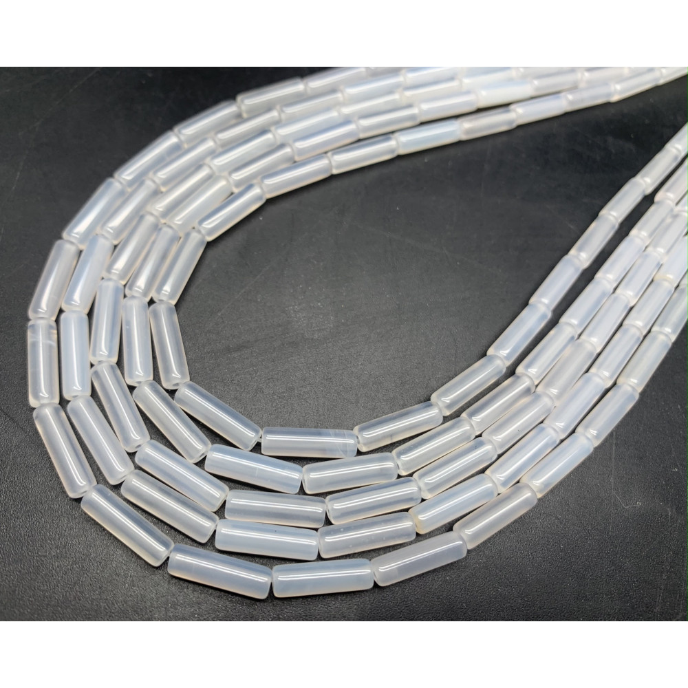 Каменные бусины, Халцедон, белый, трубочки, 13х4 мм, длина нити 38 см
