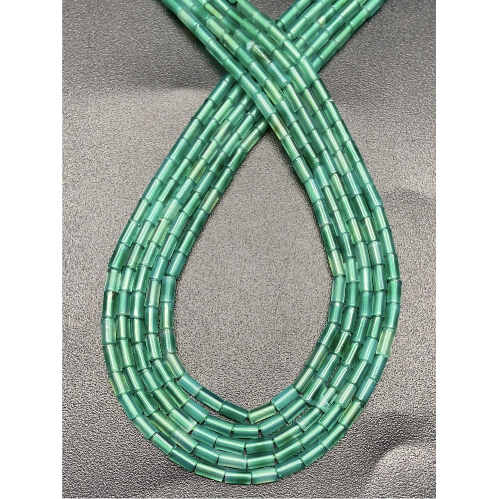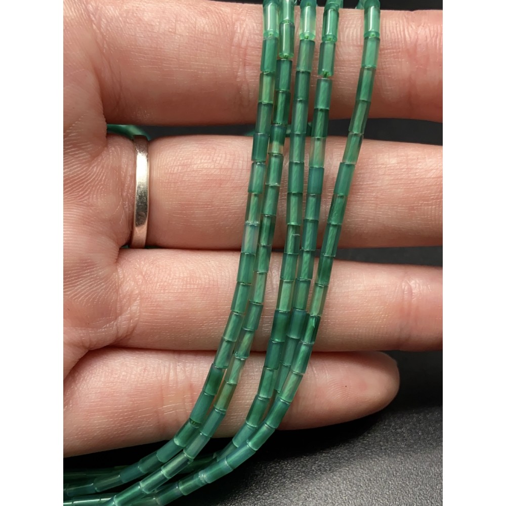 Каменные бусины, Халцедон изумрудный, тонированный, трубочки, 4х2 мм, длина нити 38 см