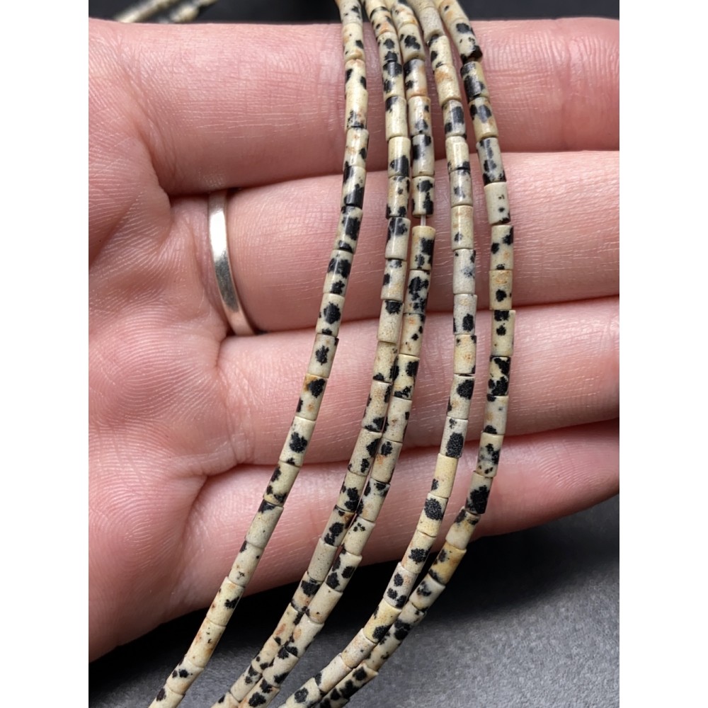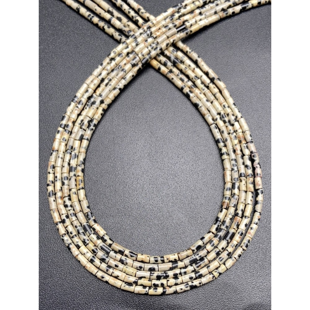 Каменные бусины, Яшма далматиновая, трубочки, 4х2 мм, длина нити 38 см