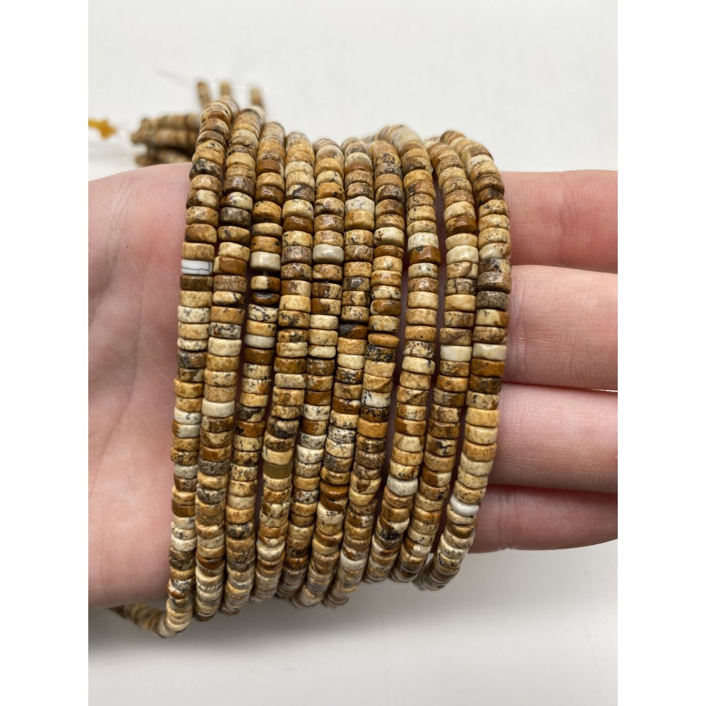 • Каменные бусины, Яшма, песочная, шайба, 4х2 мм, длина нити 38 см