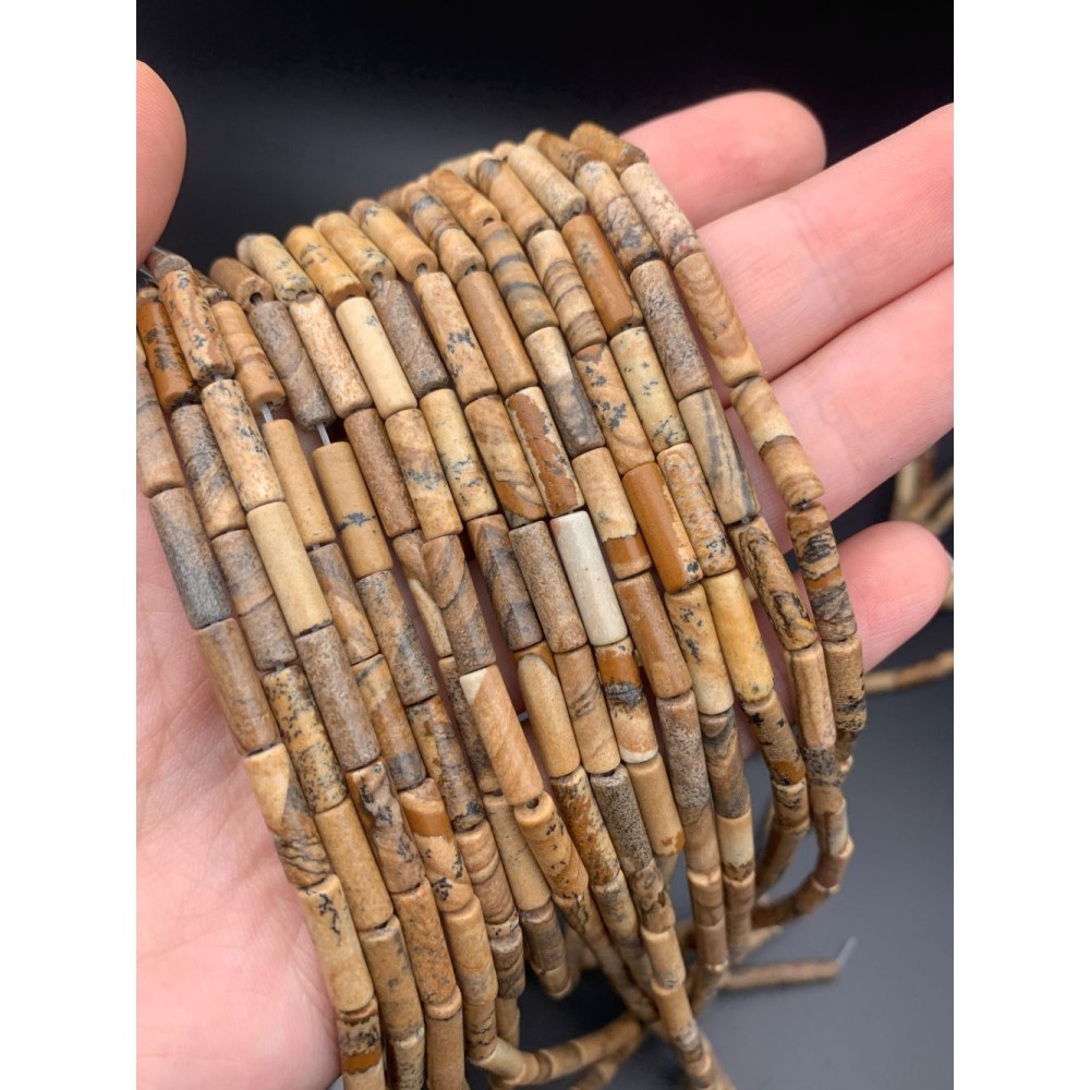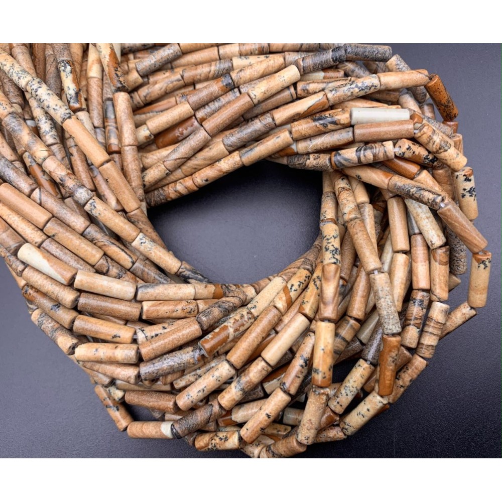 Каменные бусины, Яшма, песочная, трубочки, 13х4 мм, длина нити 38 см