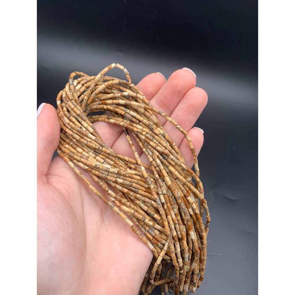 Каменные бусины, Яшма, песочная, трубочки, 4х2 мм, длина нити 38 см