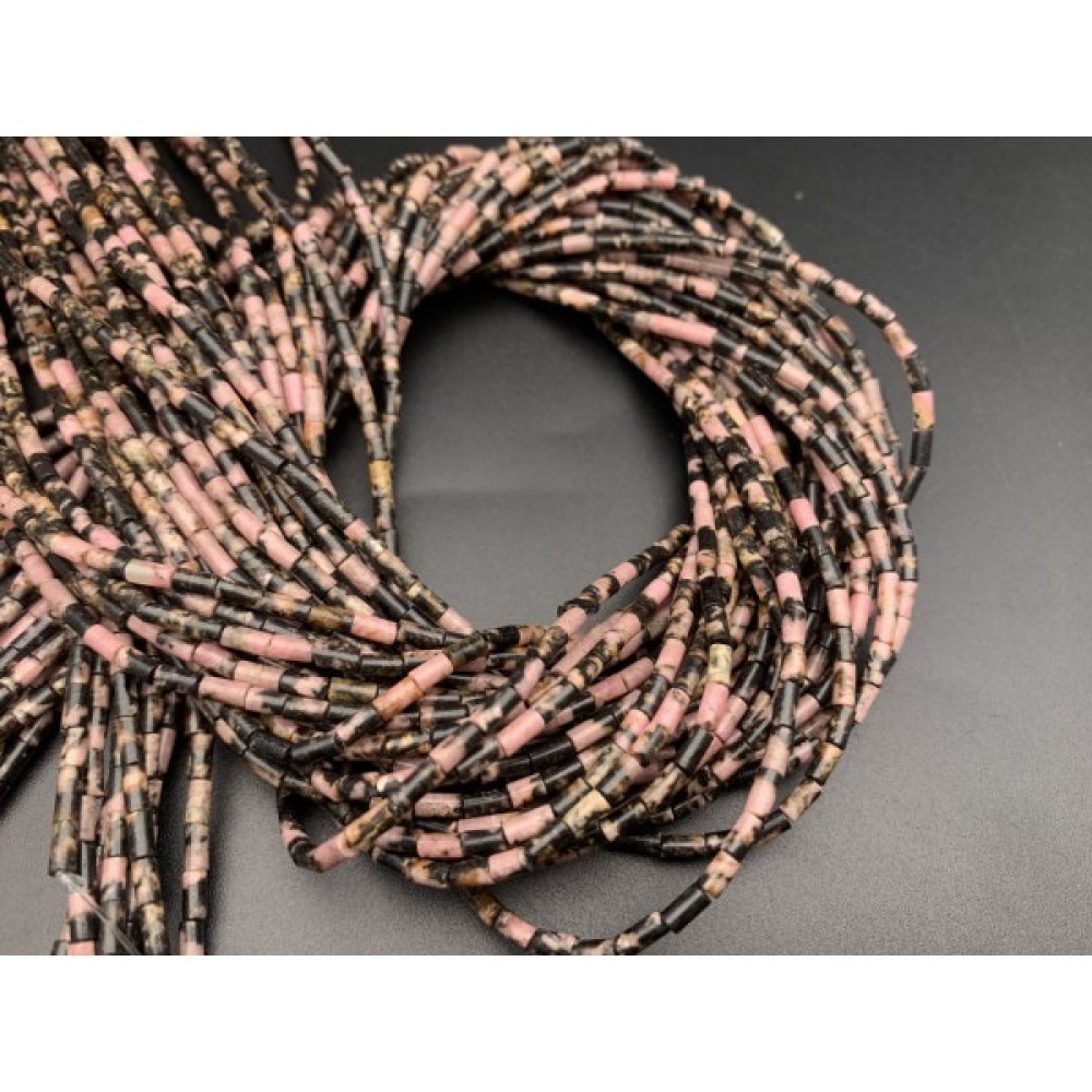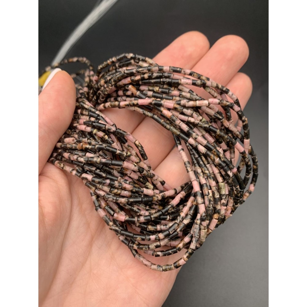 Каменные бусины, Родонит, дендритовый, трубочки, 4х2 мм, длина нити 38 см
