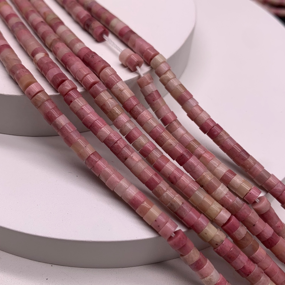 Каменные бусины, Родонит, шайба, 4х2 мм, длина нити 38 см