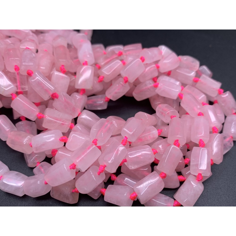 • Каменные бусины, Розовый Кварц, не обработанный, столбики, 11х7 мм, длина нити 38 см