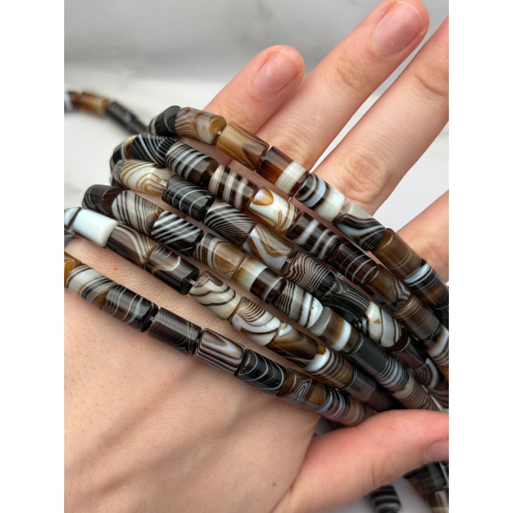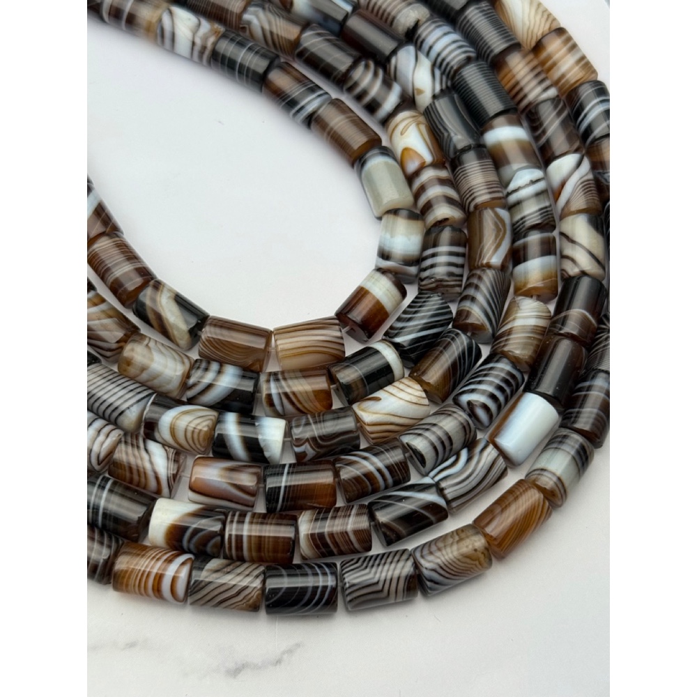 Каменные бусины, Сардоникс, трубочки (столбики), 8х12 мм, длина нити 39 см