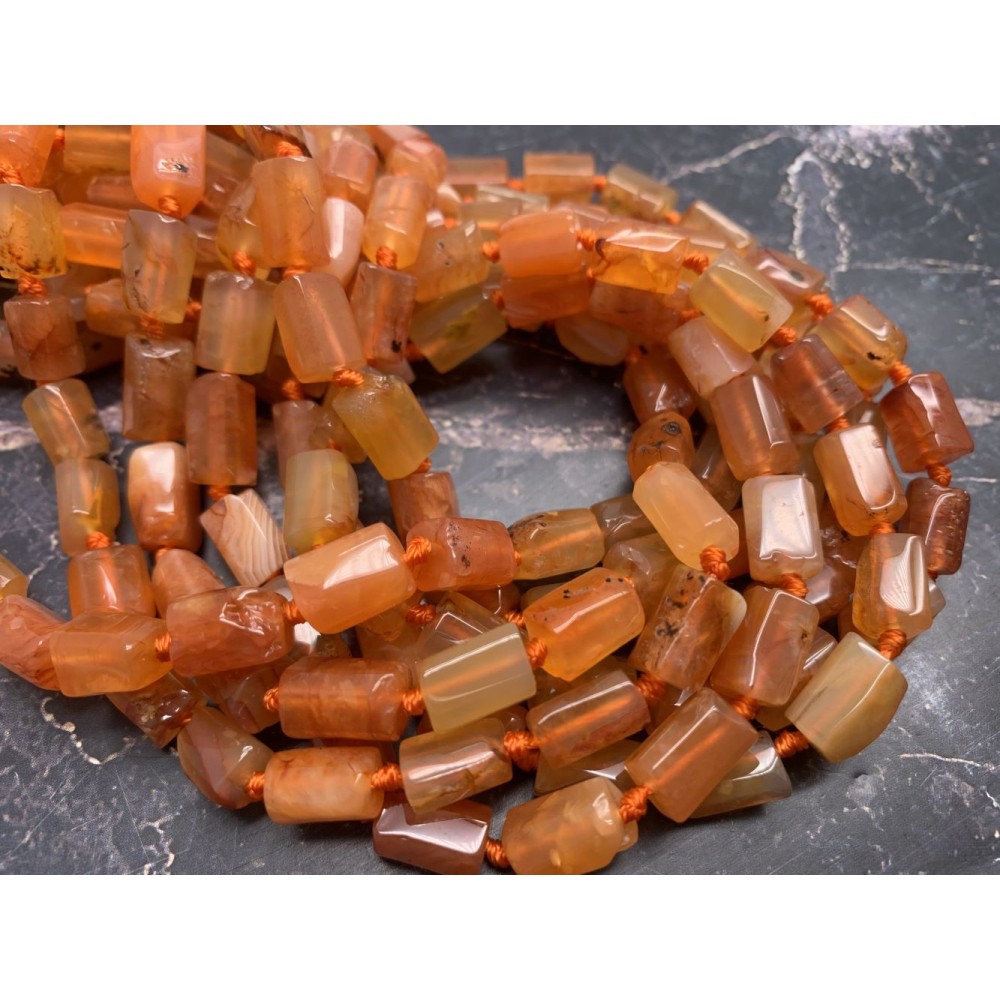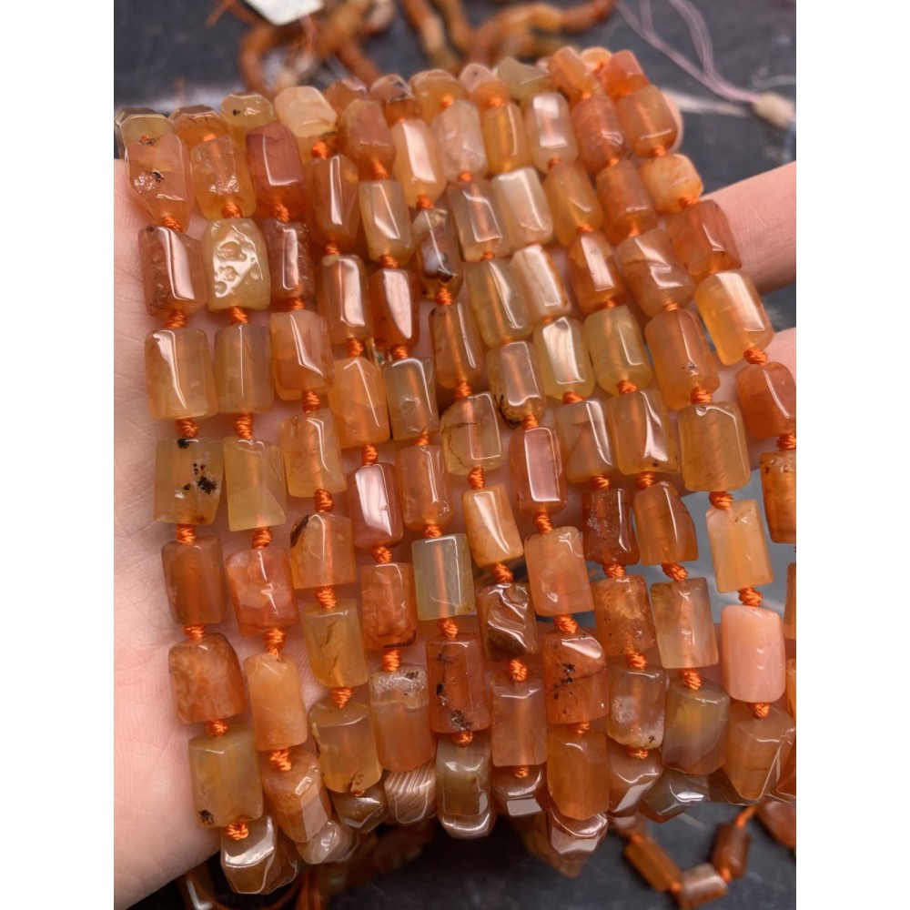 • Каменные бусины, Сердолик мульти, не обработанный, столбики, 10х7 мм, длина нити 38 см