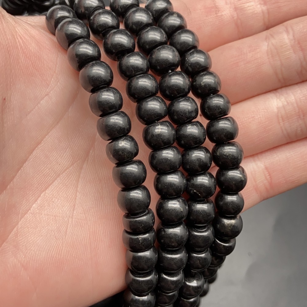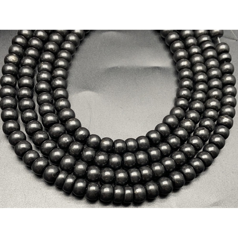• Каменные бусины, Шунгит, Карельский, рондель, 8х6 мм, длина нити 15-16 см, 25 бусин
