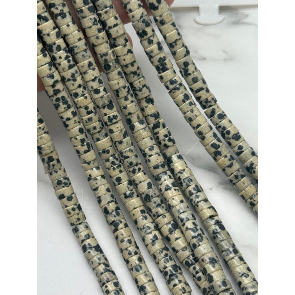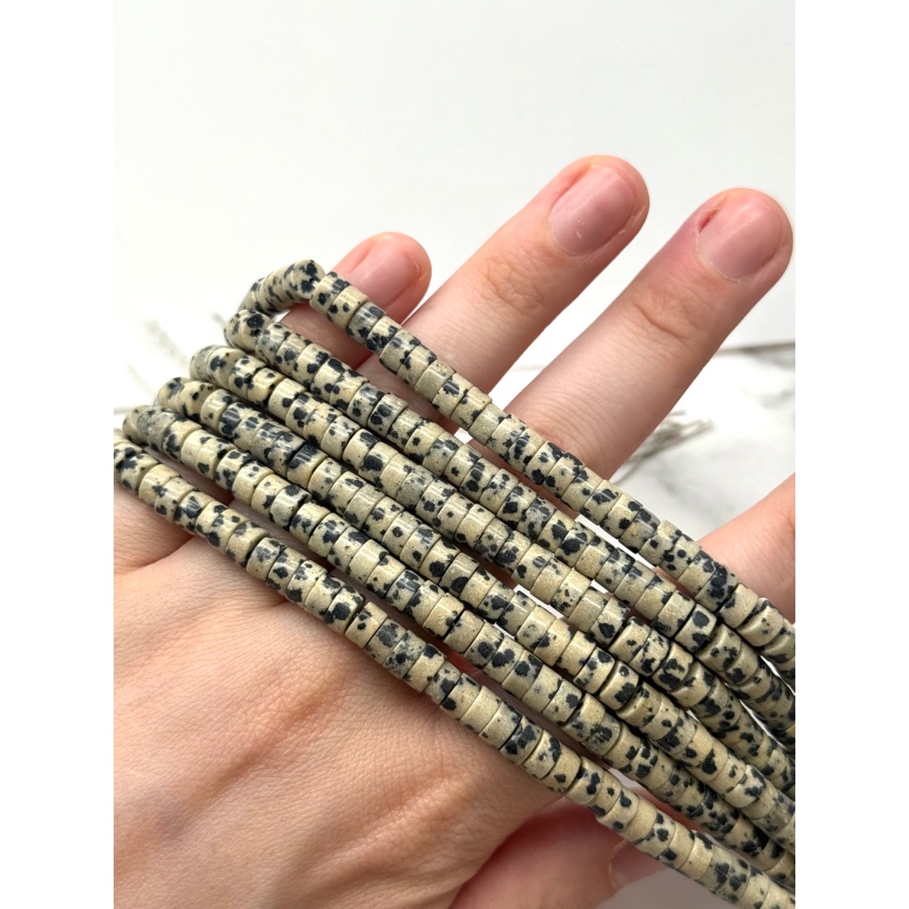 Теги: Каменные бусины, Яшма далматиновая, шайба, 6х3 мм, длина нити 39 см, 21032, Трубочки, Шайбы, Бублики