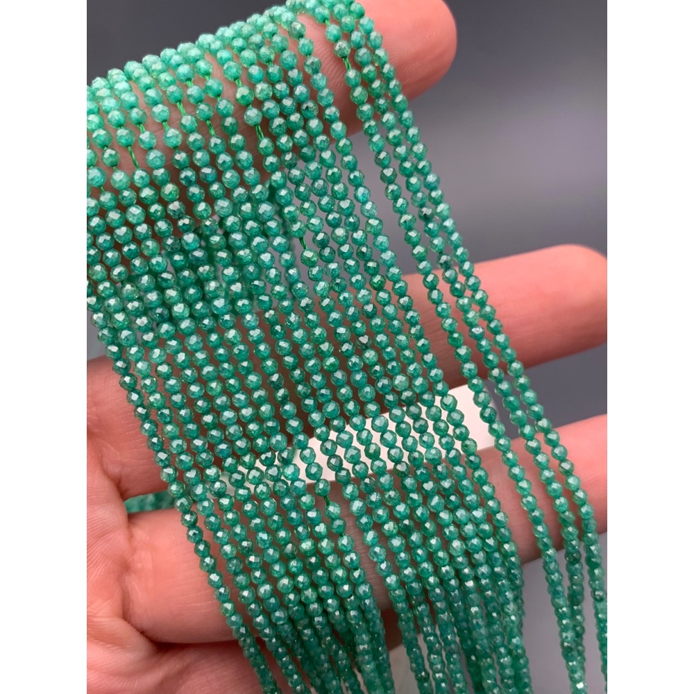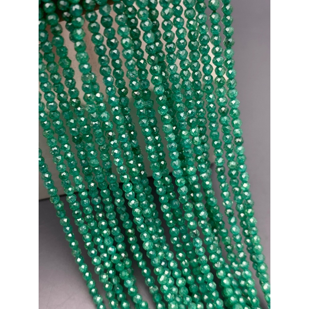 Каменные бусины, Цирконий кубический, (т.н. Циркон), зеленый мятный кристалл, шарик огранка, 2 мм, длина нити 38 см