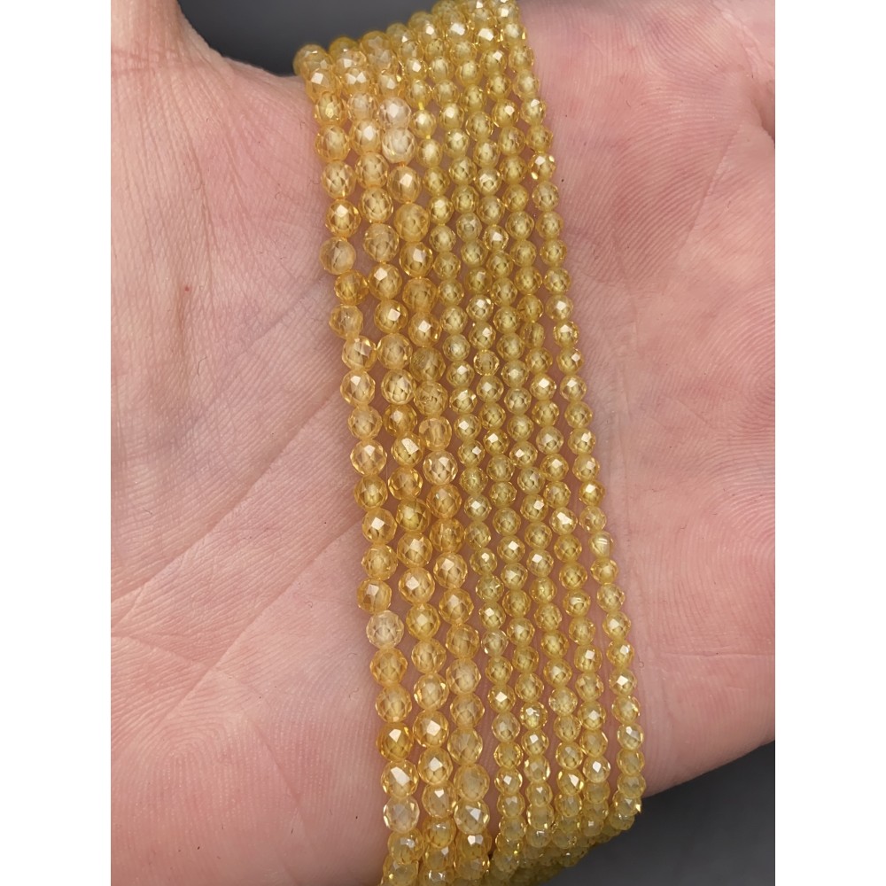 • Каменные бусины, Цирконий кубический, (т.н. Циркон), желтый кристалл, шарик огранка, 3 мм, длина нити 38 см