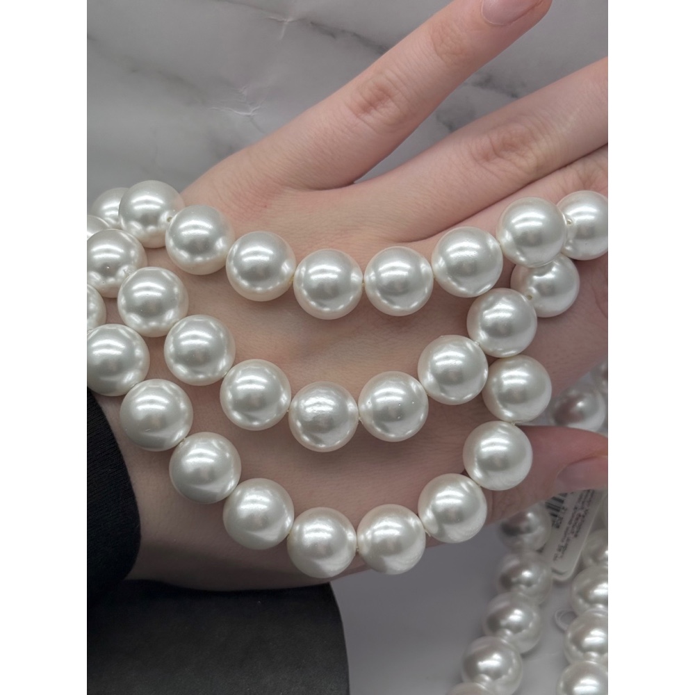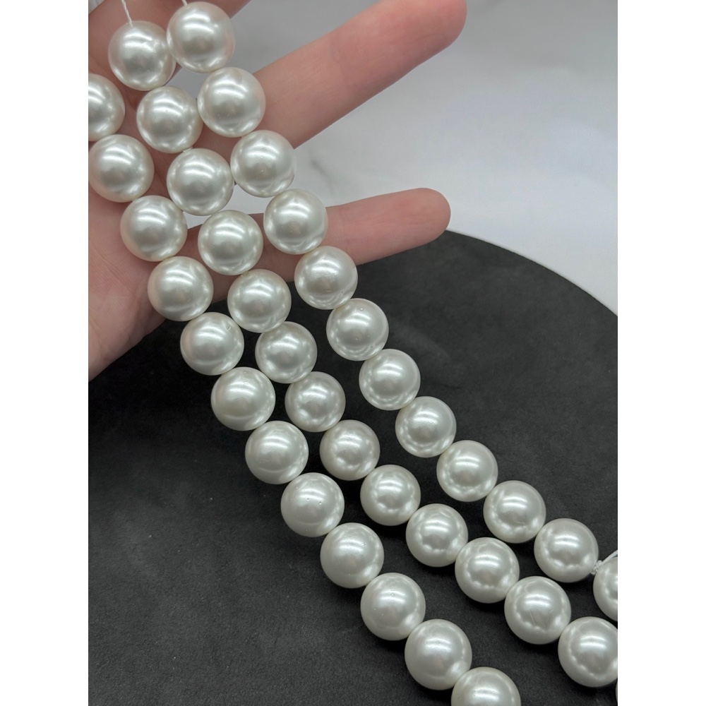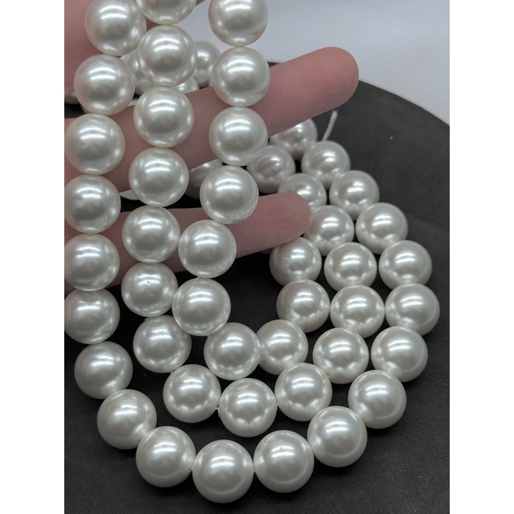 Жемчуг Майорка, искусственный, белый, шарик гладкий, 14 мм, длина нити 38 см